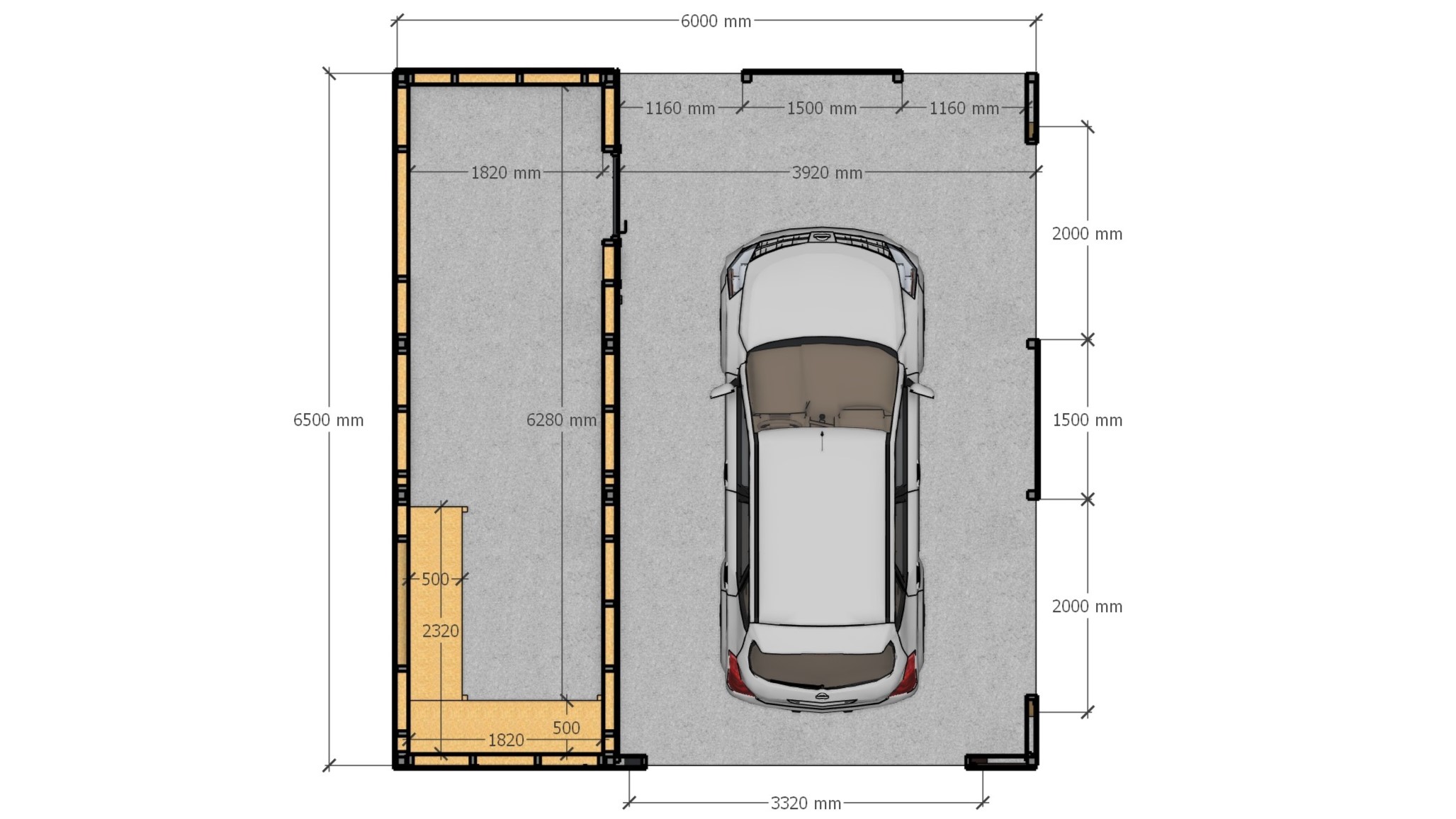 Навес для 1 авто + хозблок. Общие размеры 6,0х6,5 м (электрика и кронштейн для колес в подарок)