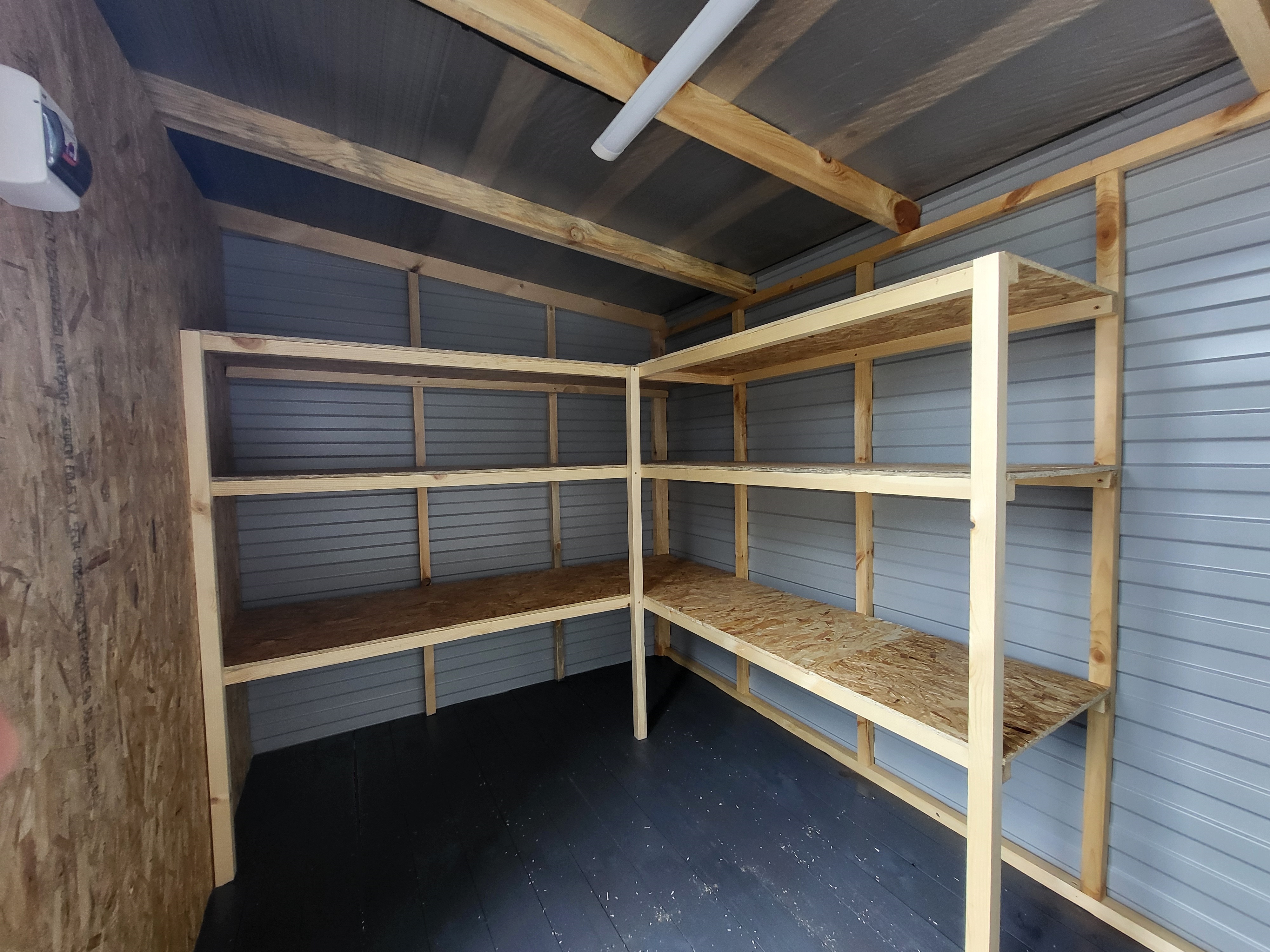 Вам не надо будет покупать стеллажи в хозблок, а надо будет просто привезти свои вещи и разложить их по встроенным стеллажам вашего хозблока!
