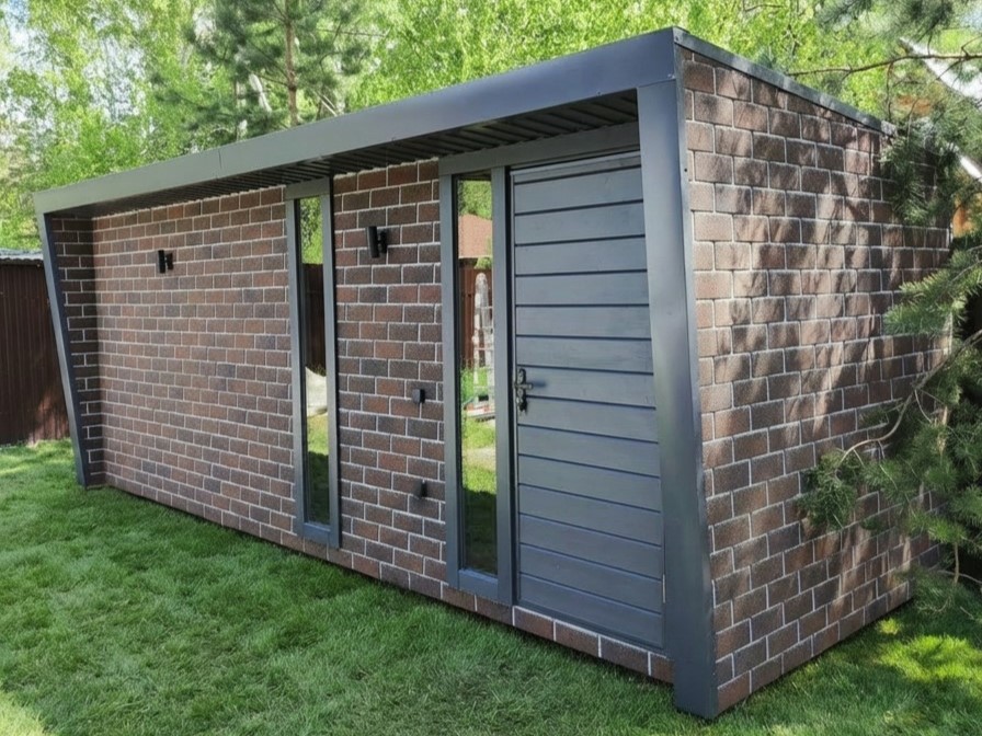 ХОЗБЛОК 2,5х6,0м с обшивкой стен из гибкой черепицы (стеллажи в комплекте)