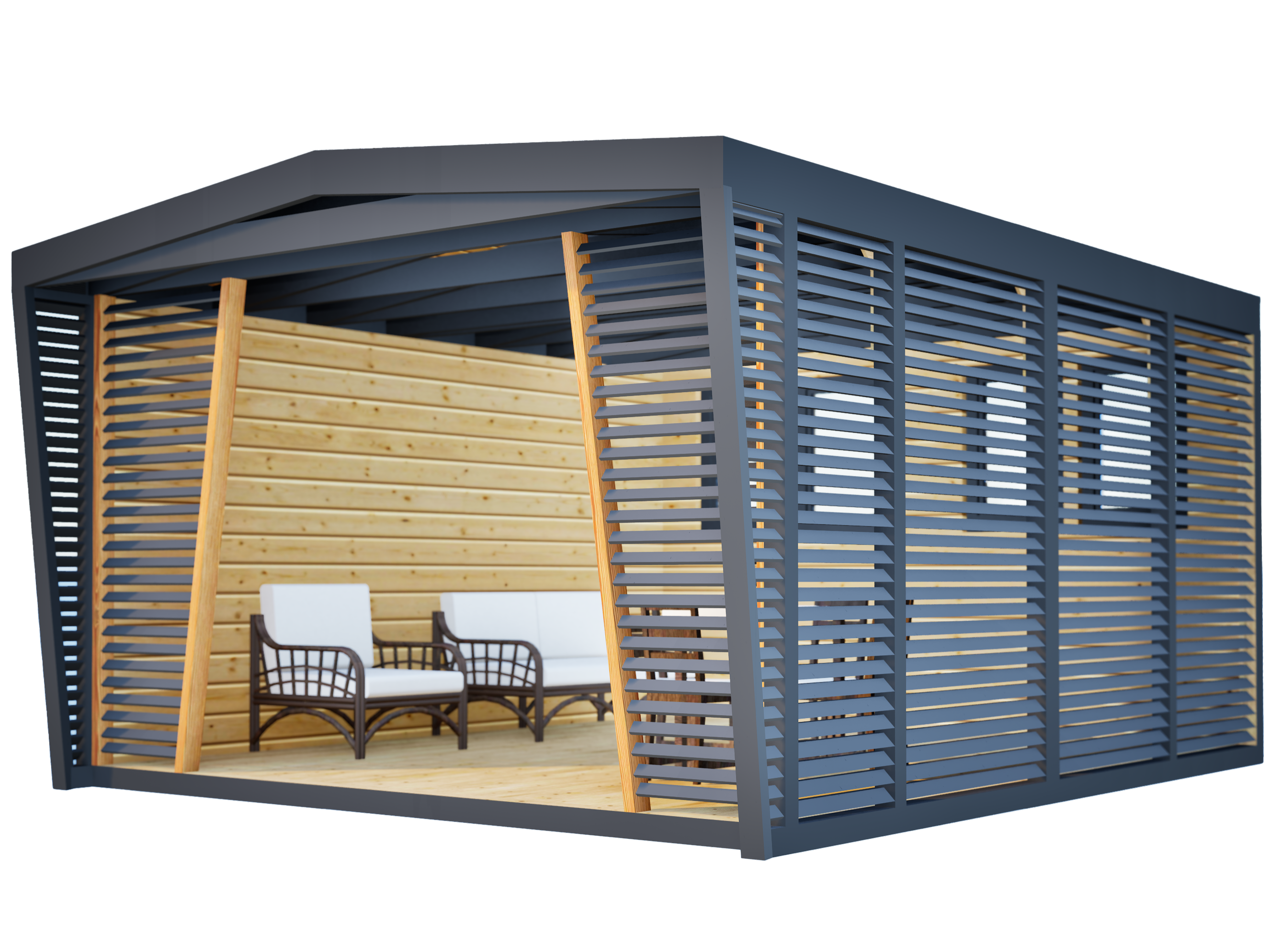 Двухмодульная беседка 4,0х5,0м с двумя глухими стенками.