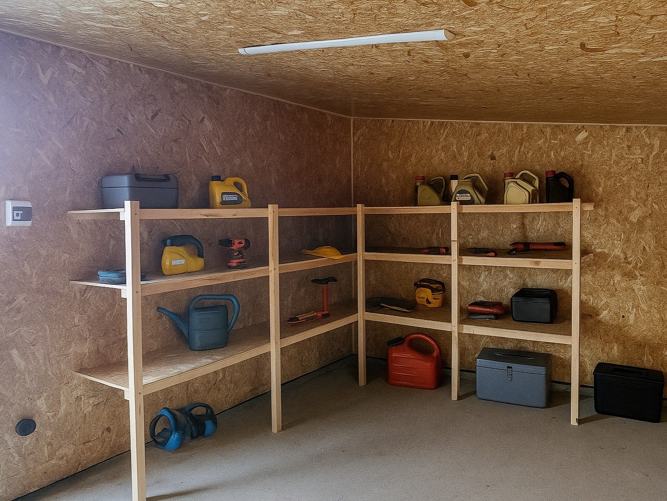 ОСП-плиты внутри создают ровные функциональные стены - можно в любом месте стены повесить инструмент или полки.