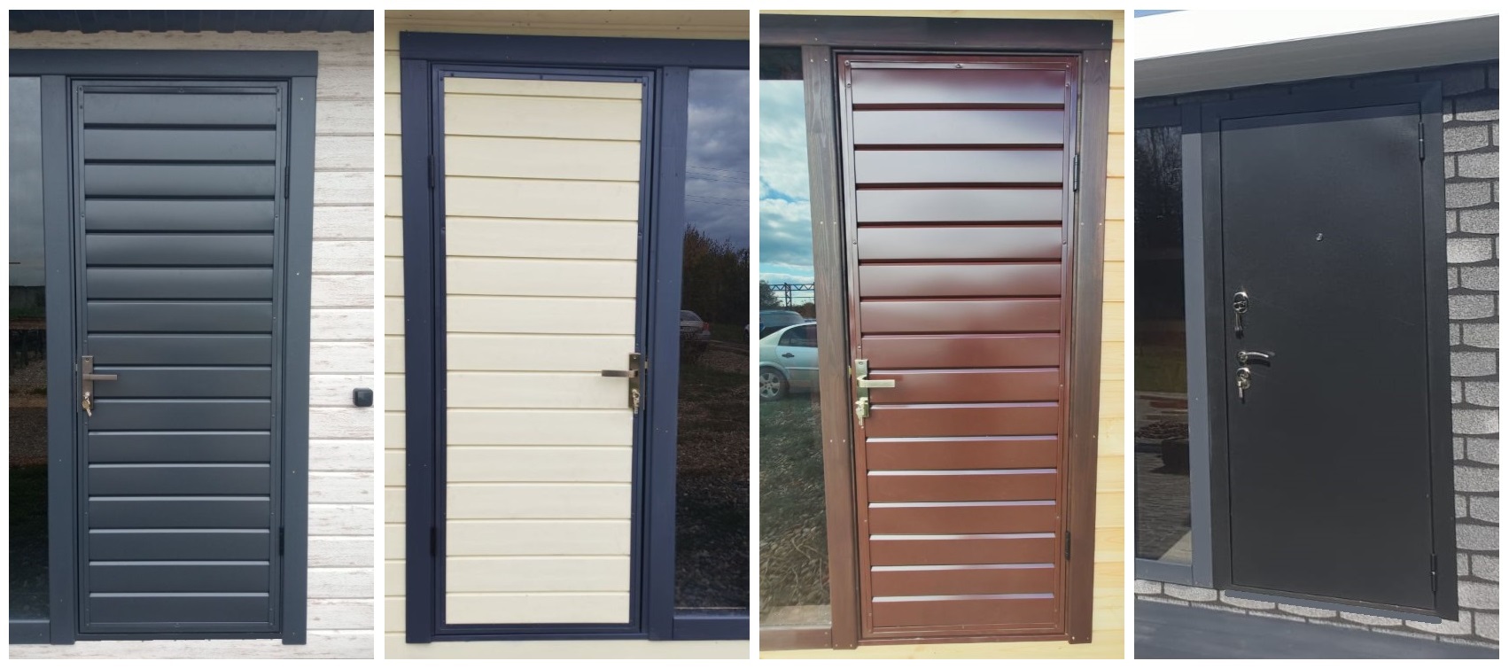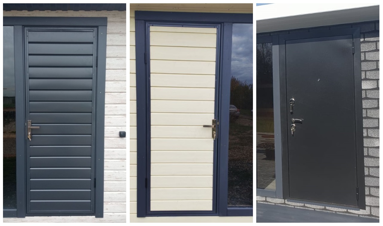 Либо можем поставить в хозблок заводскую утепленную стальную дверь. У неё стоят уплотнители и стальные наличники.