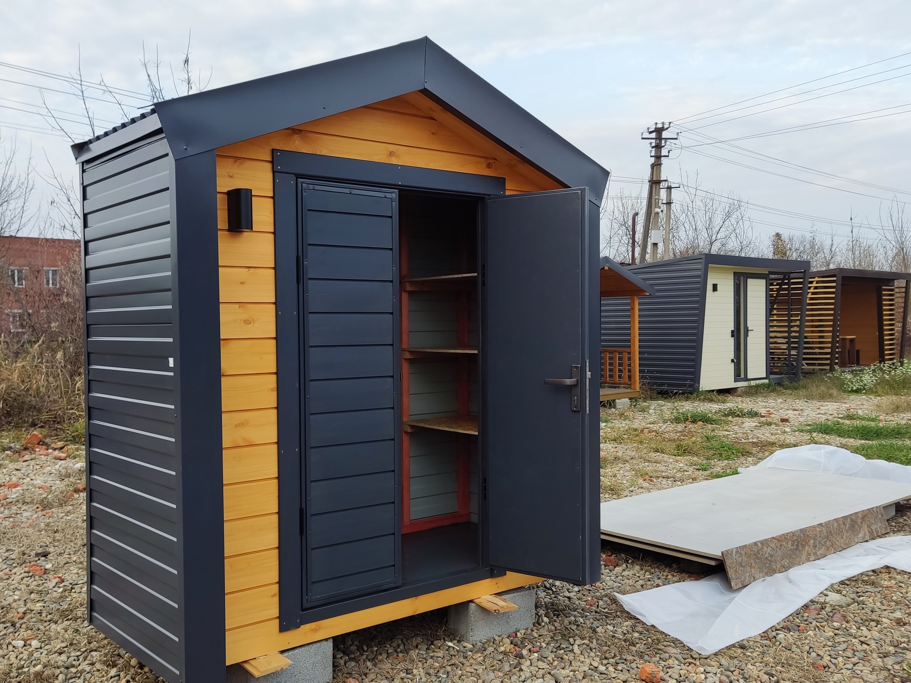 Шкаф уличный 0,8х2,15м с обшивкой из профлиста (полки в комплекте)