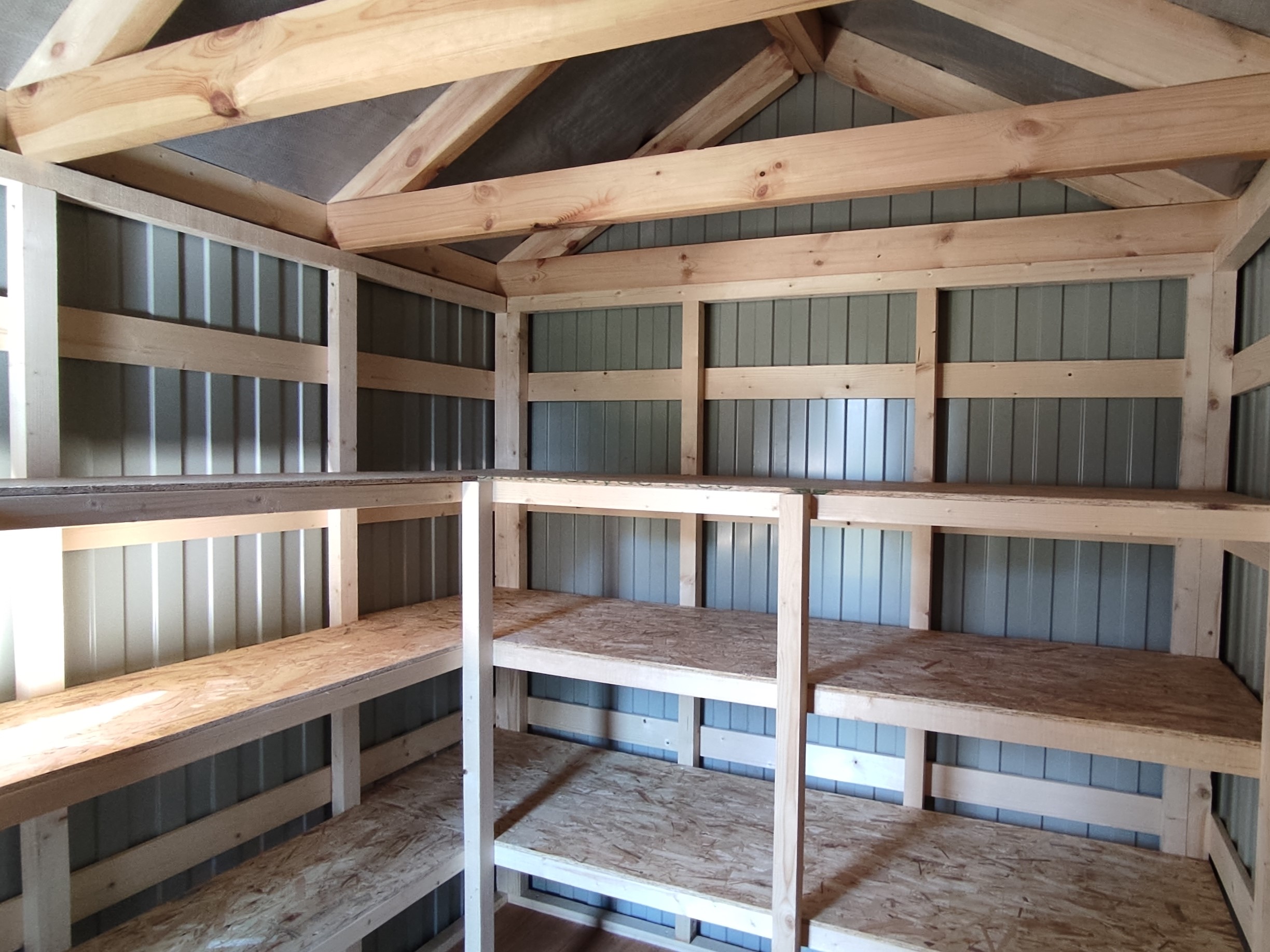 Вам не надо будет покупать стеллажи в хозблок, а надо будет просто привезти свои вещи и разложить их по встроенным стеллажам вашего хозблока!
