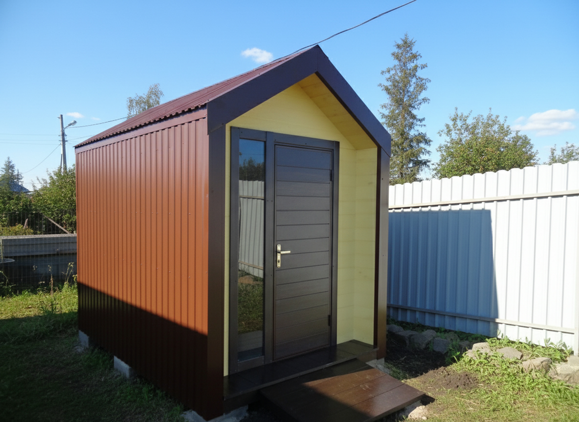 Наружная обшивка стен выполнена долговечным профлистом