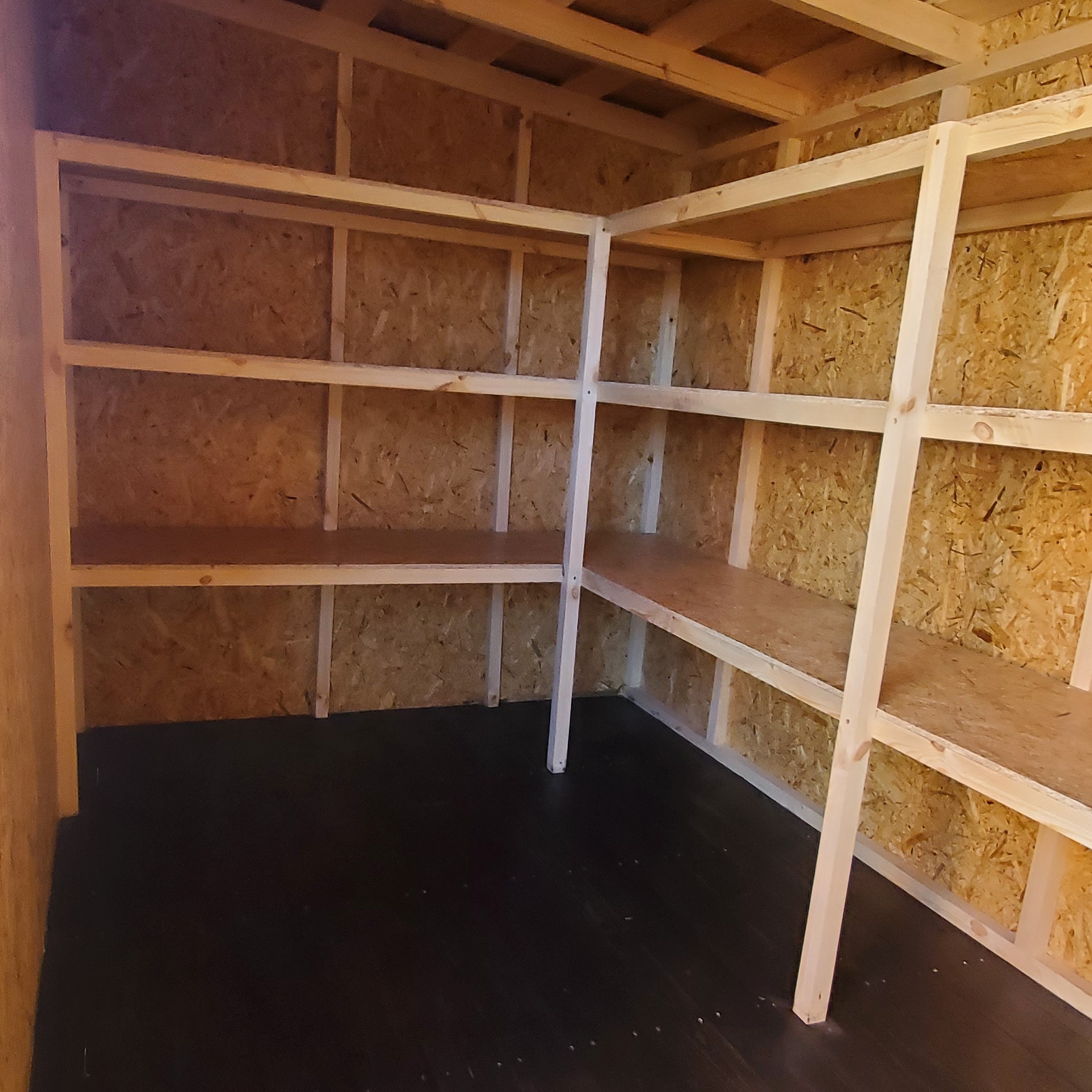 Вам не надо будет покупать стеллажи в хозблок, а надо будет просто привезти свои вещи и разложить их по встроенным стеллажам вашего хозблока!
